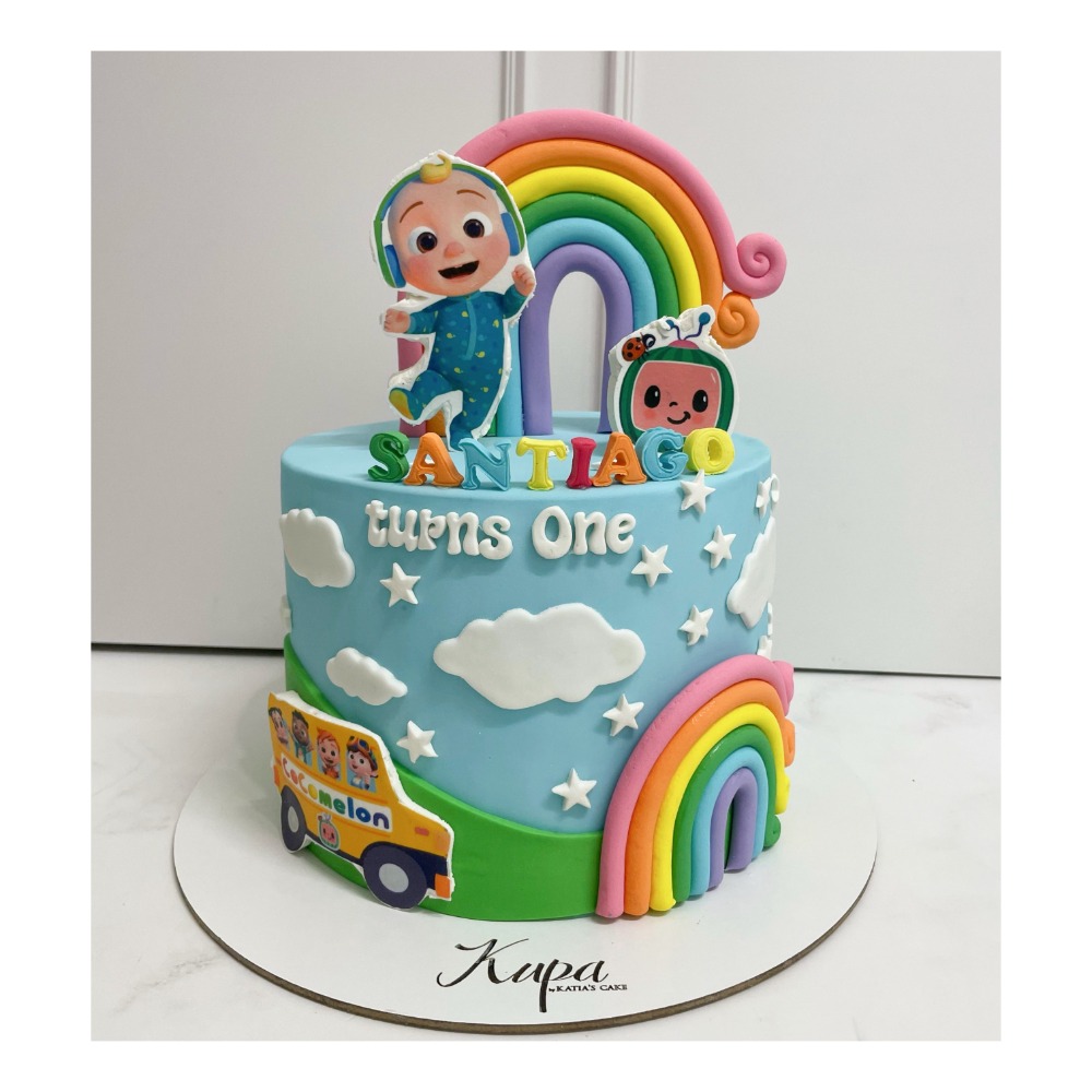 Pastel de betún con imágenes comestibles y detalles de fondant