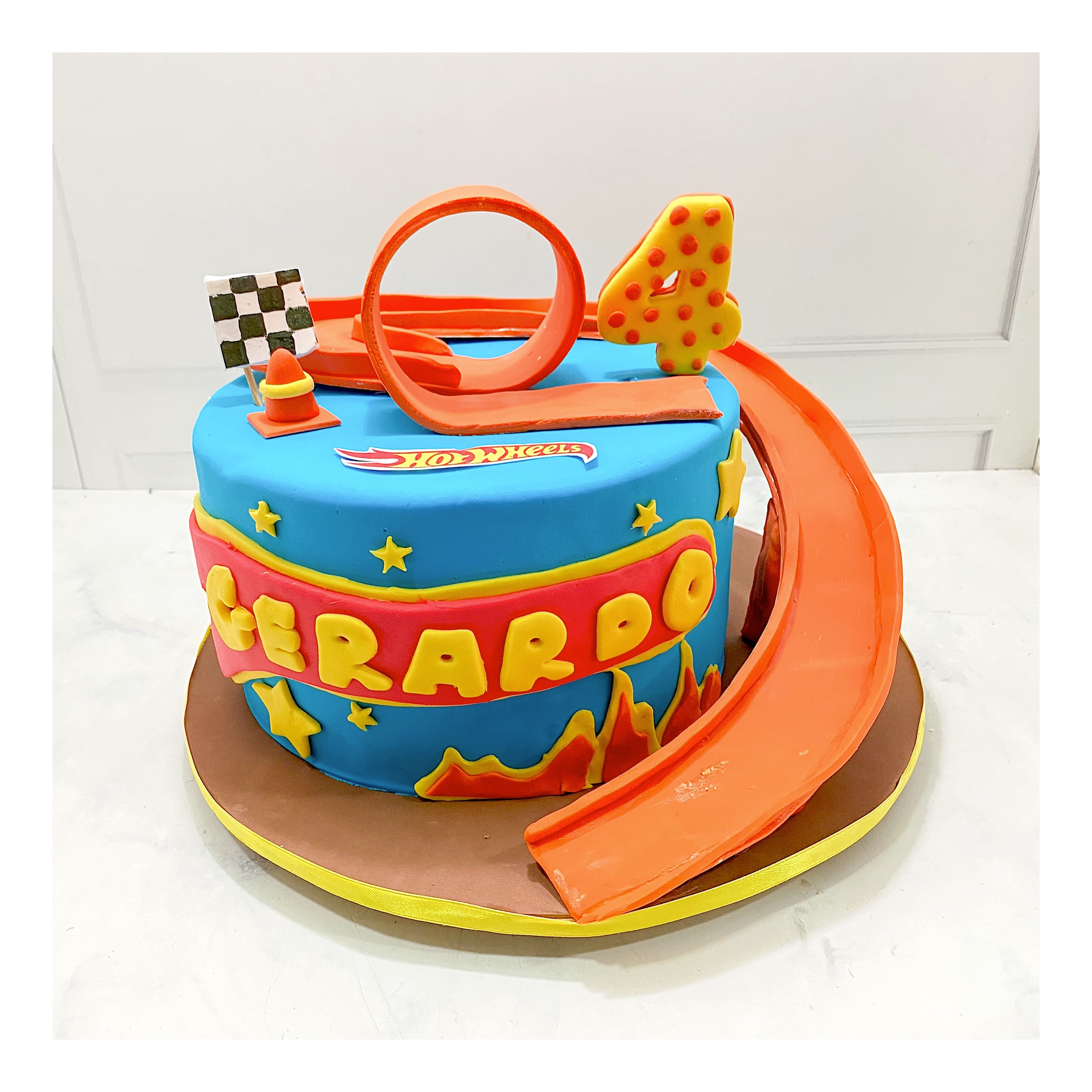 Pastel de fondant con pista para coches