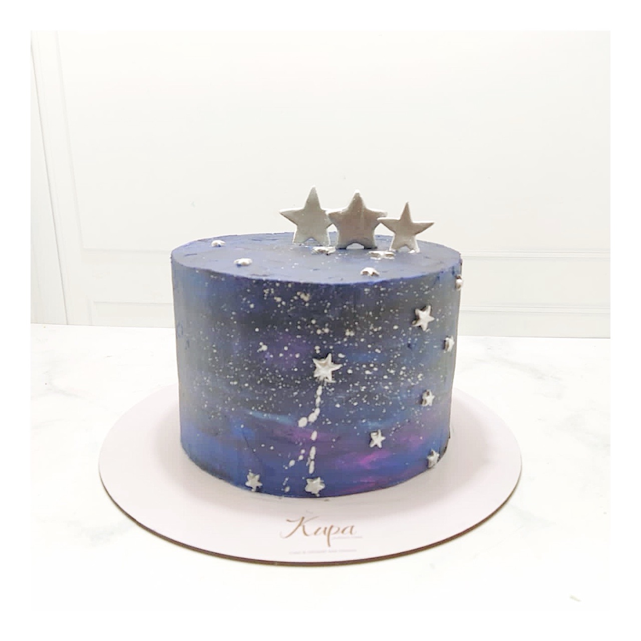 Pastel de betún estilo "galaxy" con estrellas en fondant