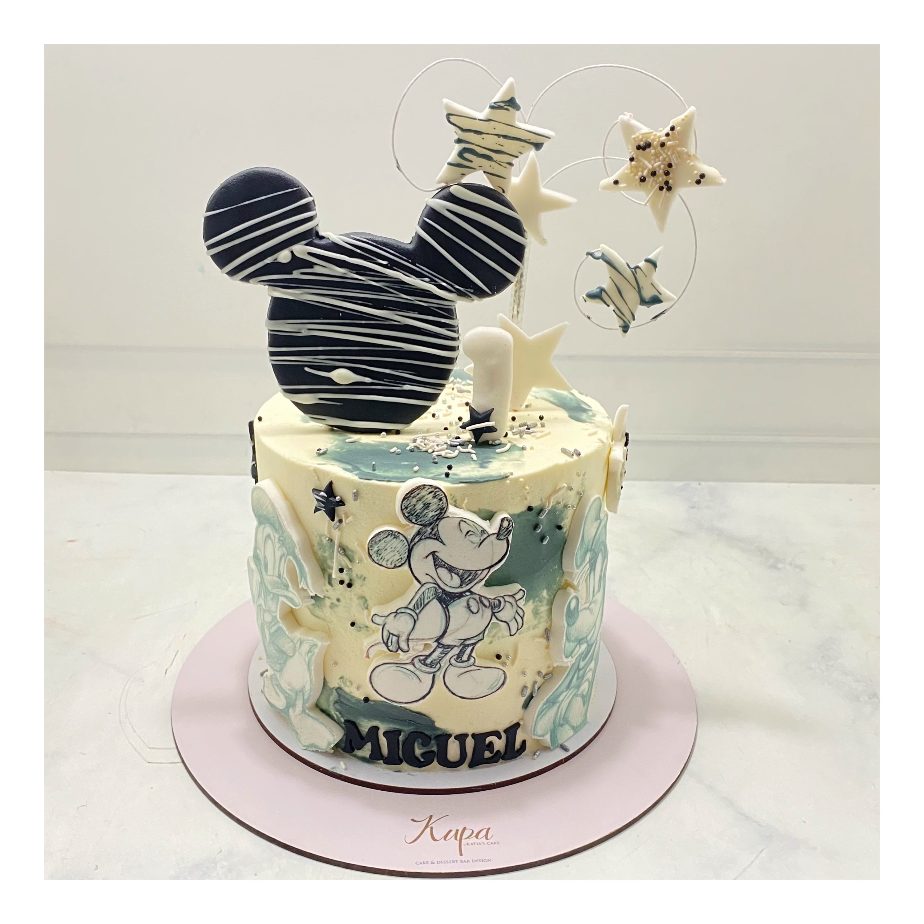 Pastel de betún con decoraciones en fondant e impresiones comestibles